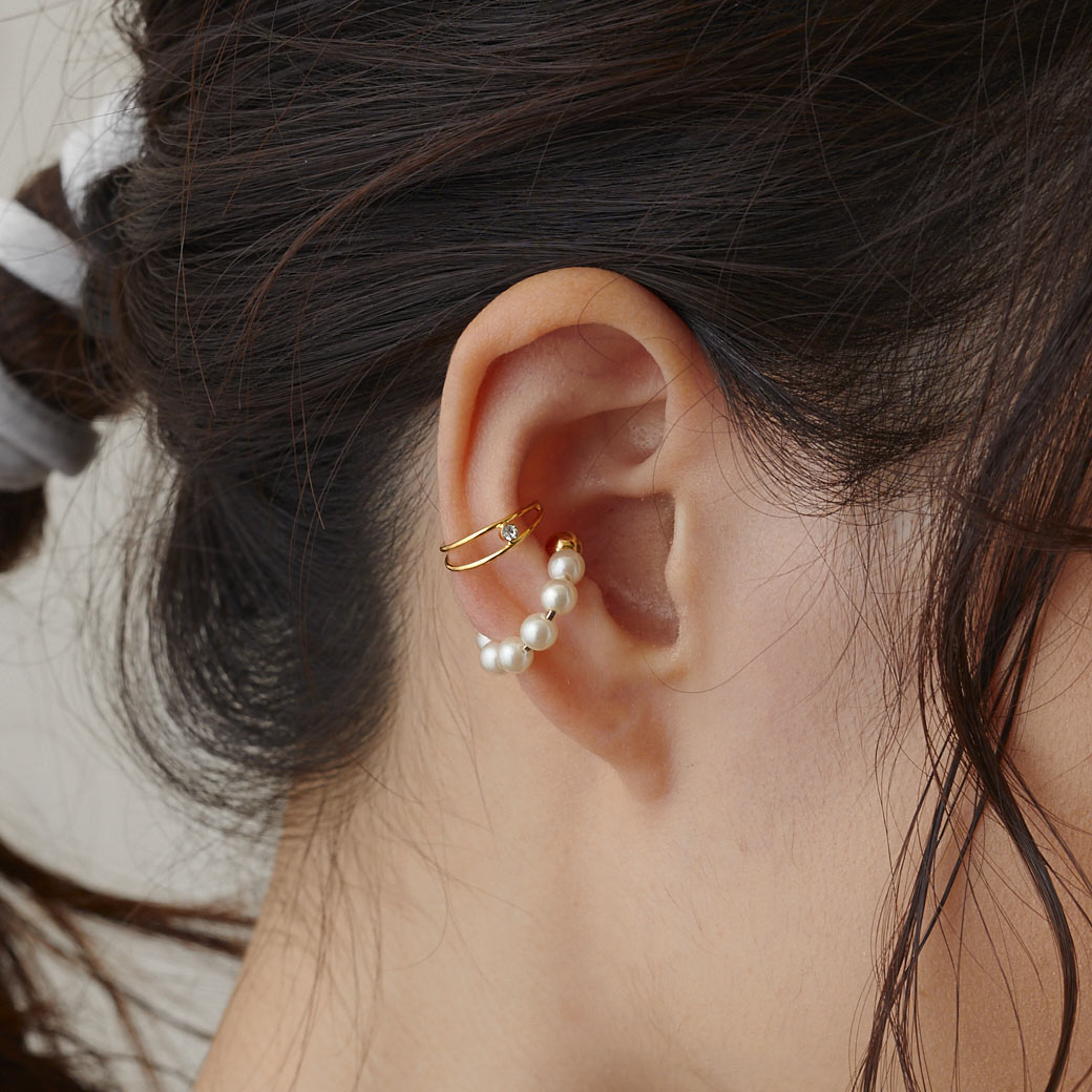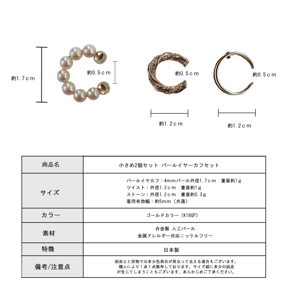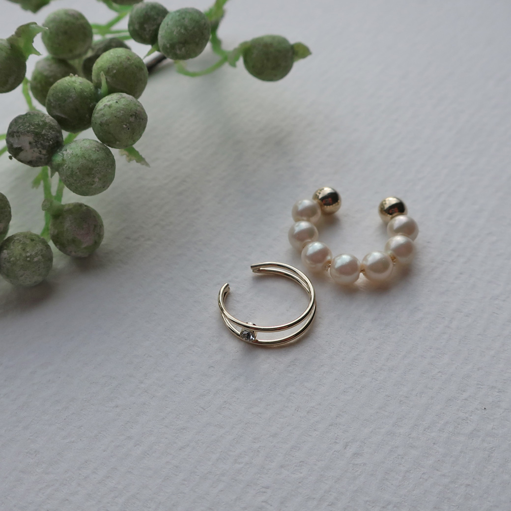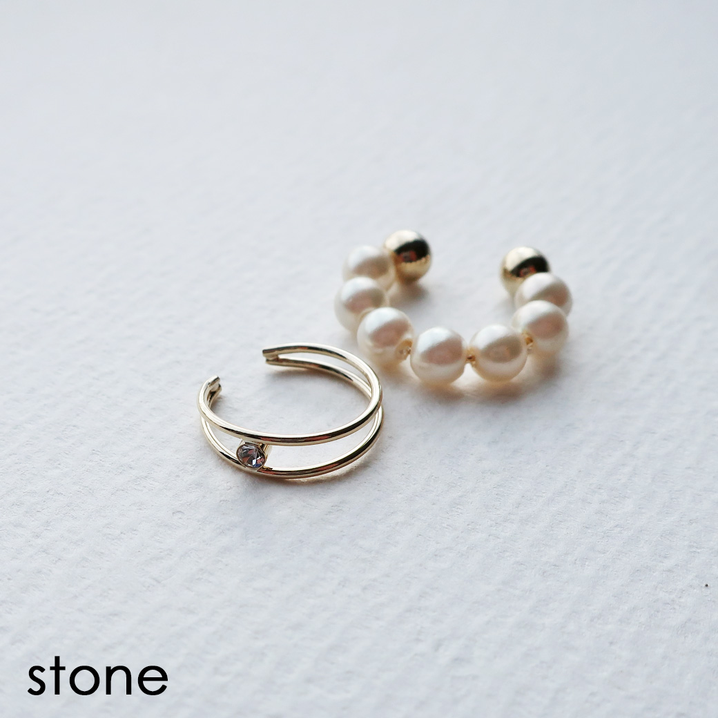 パール×ツイスト、またはストーンの2セットイヤーカフ。