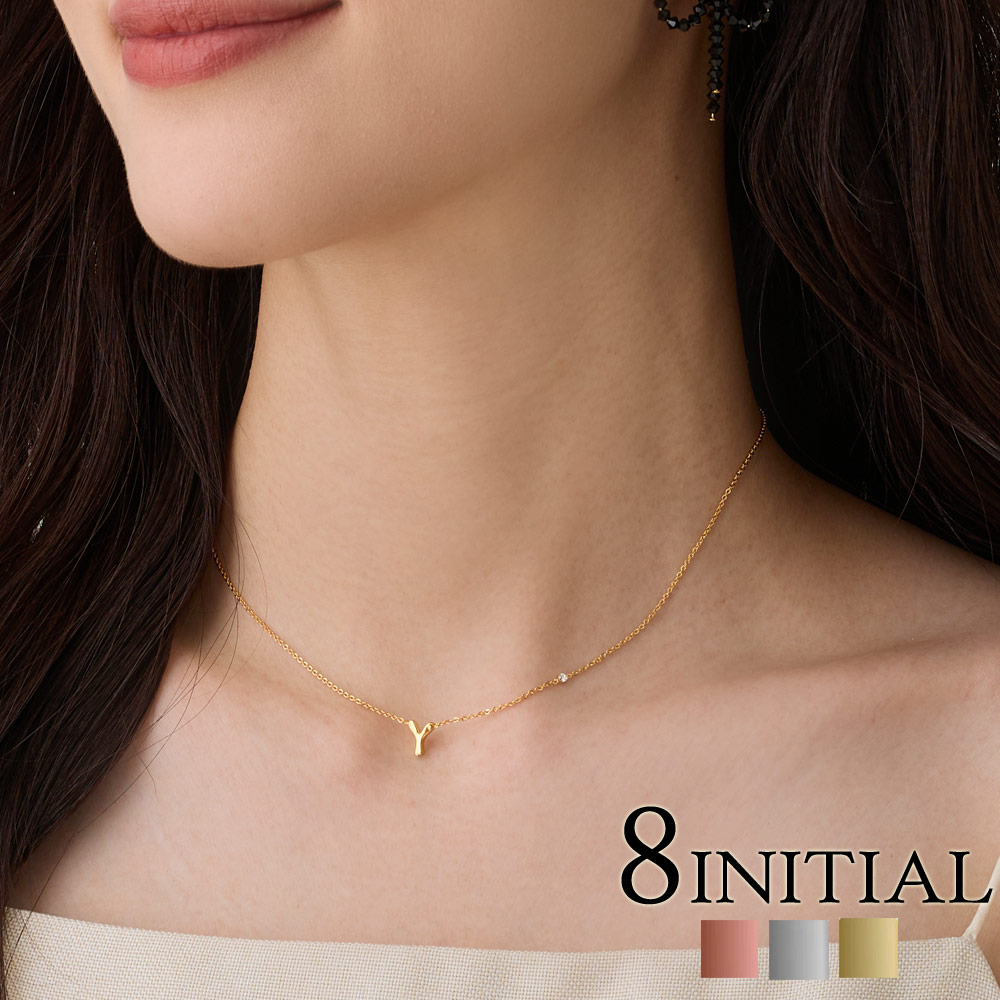 ■ひとめ惚れ★小さくて、ほっこりしたフォントのイニシャル■チェーンの途中にある1粒のラインストーンはワンポイトにもなり、デコルテもキレイに魅せてくれそうです。