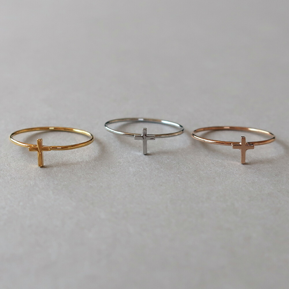 ピンキーリング 指輪 リング 日本製 クロス 十字架 レディース サイズ ブランド K18GP ゴールド おしゃれ 人気 20代 30代 40代 大人 スキンジュエリー 小ぶりシンプル アクセサリー