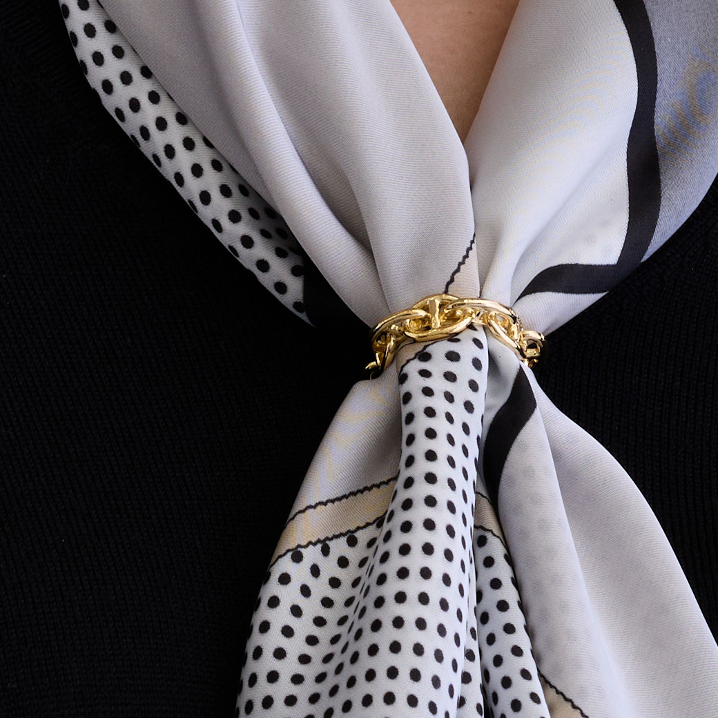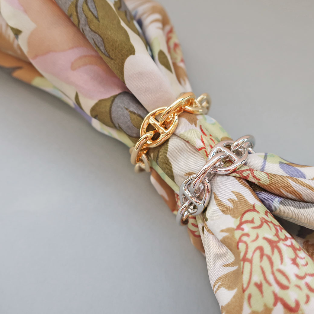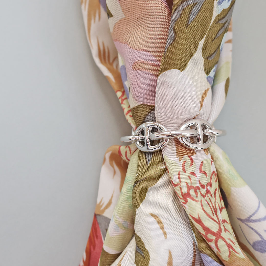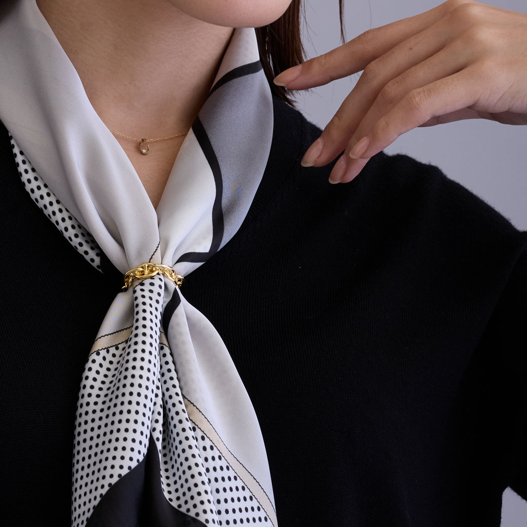 【幅広く活躍する、大人のための上質アイテム】しなやかなスカーフを美しくまとめる、日本製アンカーチェーン・スカーフリング。