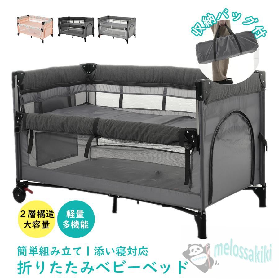 ベビーベッド ベビーサークル 折りたたみ 添い寝ベッド プレイヤード サイド高さ調整可能 お昼寝マット キャリーバッグ付 マットレス付 キャスター付き
