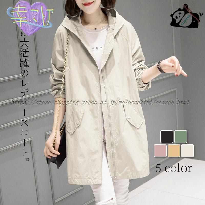 マウンテンパーカー レディース ファスナー ミディアム丈 裏地あり フード付き ウィンドブレーカー ジャケット アウター 羽織 春秋 おしゃれ