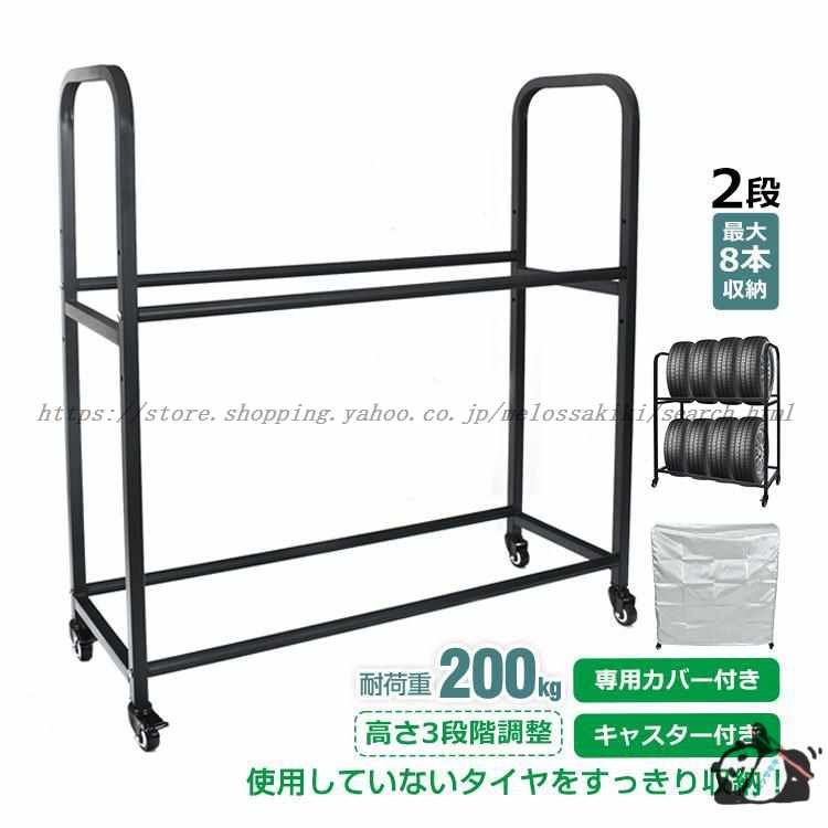 タイヤラック キャスター付き カバー 最大8本 タイヤ収納 組立簡単 スタッドレス タイヤ保管 タイヤスタンド 耐荷重200kg 二段式 高さ調整 ee358