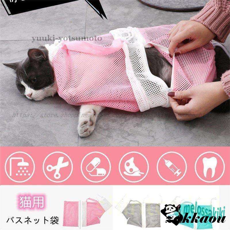 猫用お風呂バッグ シャワーバッグ 猫用ネット袋 耳掃除 シャンプー 爪切り 暴れを防ぐネット みのむし グルーミング ペット用品 猫用品 ネコ 多機能