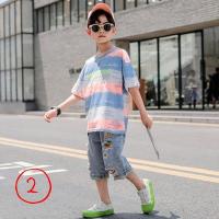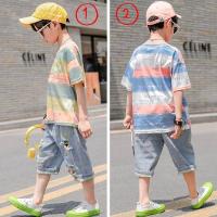 子供服 キッズ 男の子 セットアップ 上下セット 半袖 半ズボン カジュアル おしゃれ ボーダー 夏 ゆったり リゾート デニムパンツ 上下 セット