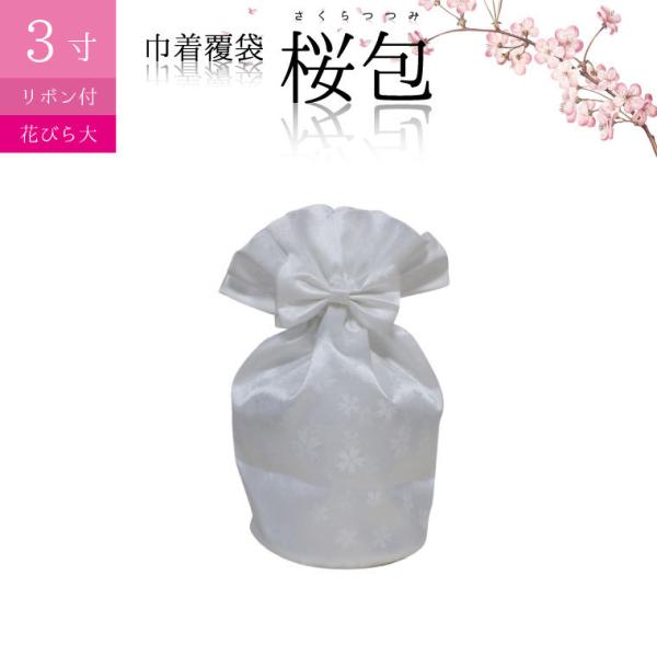 骨袋 骨壷カバー【覆い袋のみ】桜包 さくらつつみ 花びら大 リボン付き ホワイト 3寸 巾着 覆袋