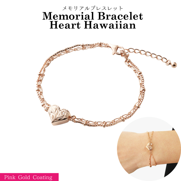 メモリアルジュエリー ハートハワイアン ピンクゴールド メモリアルブレスレット 遺骨