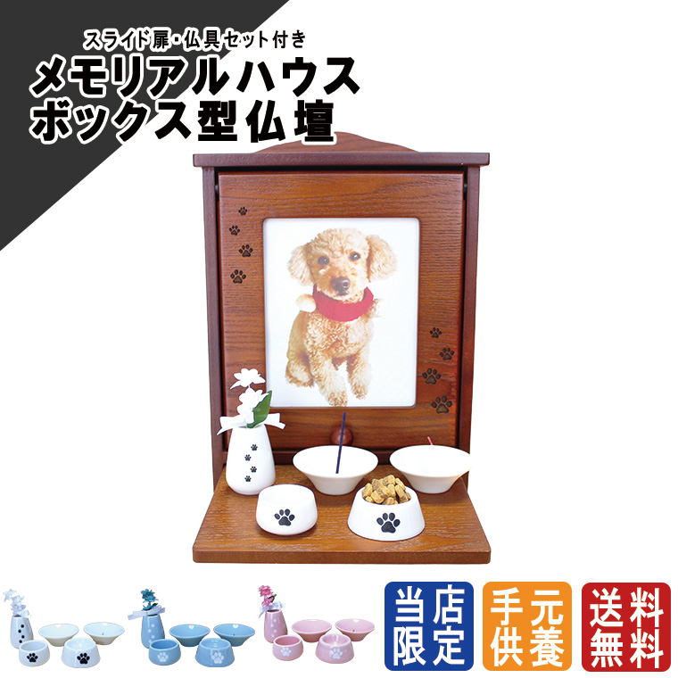 ペット仏壇セット メモリアルハウス ボックス ブラウン 肉球 あしあと刻印入り 肉球刻印入り 仏具8点セット 仏壇仏具刻印あり