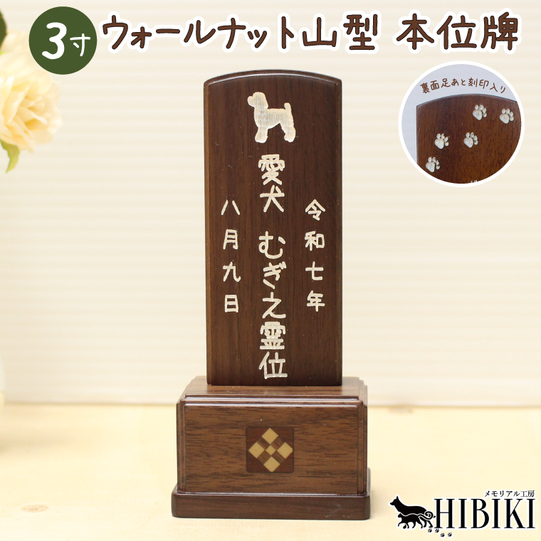 ペット 位牌 ウォールナット 山型位牌 3寸 本格位牌 オーダーメイド 刻印入り