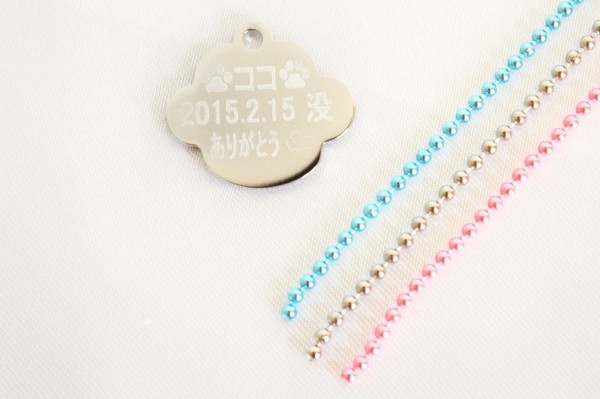 ペット仏具 メモリアルプレート(小) 肉球 型 名前 と 想い を 刻印 選べるカラー チェーンつき