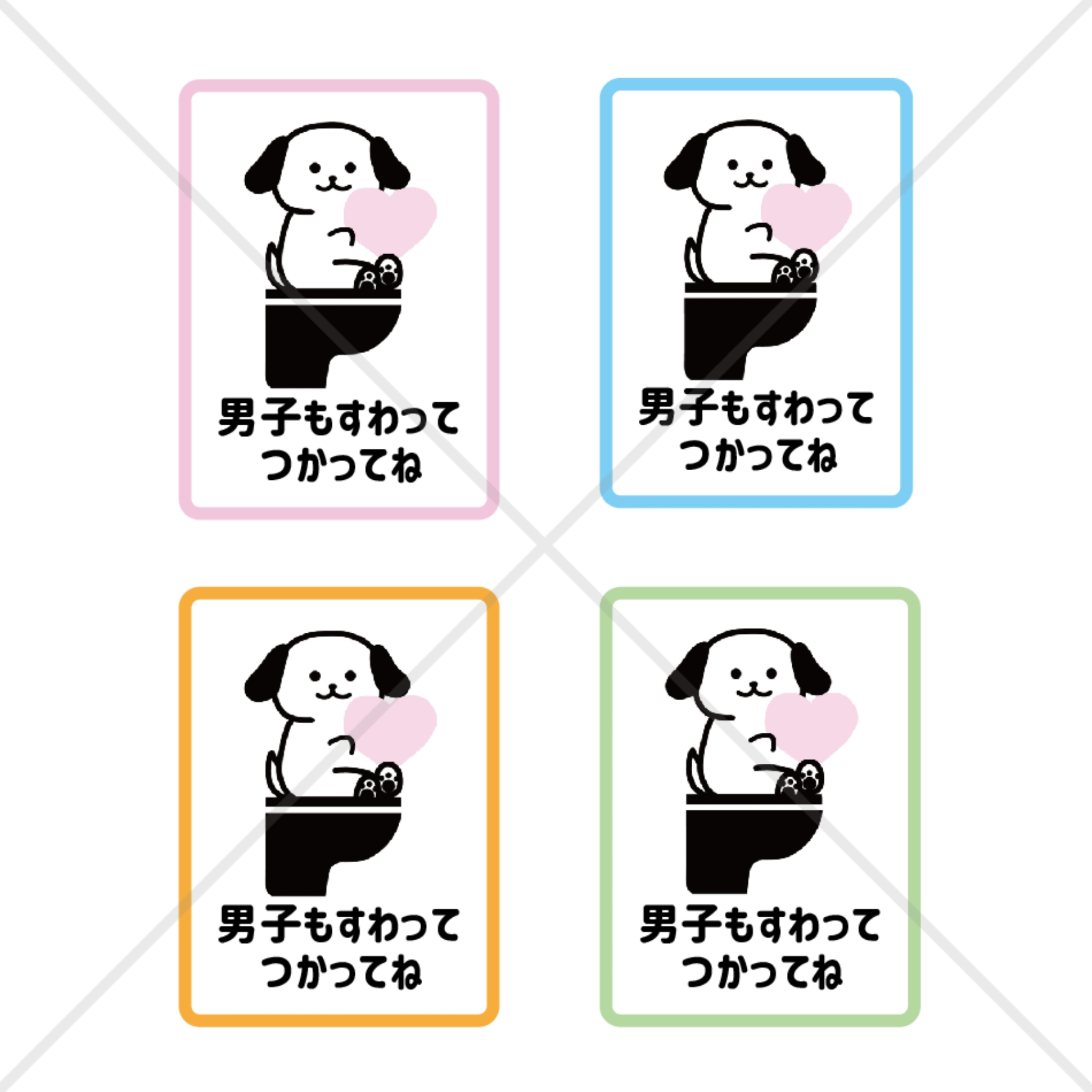 【立ちション禁止・飛び散り防止】ワンちゃんで男子も座って使ってねシール【トイレサイン・トイレマーク・トイレシール】