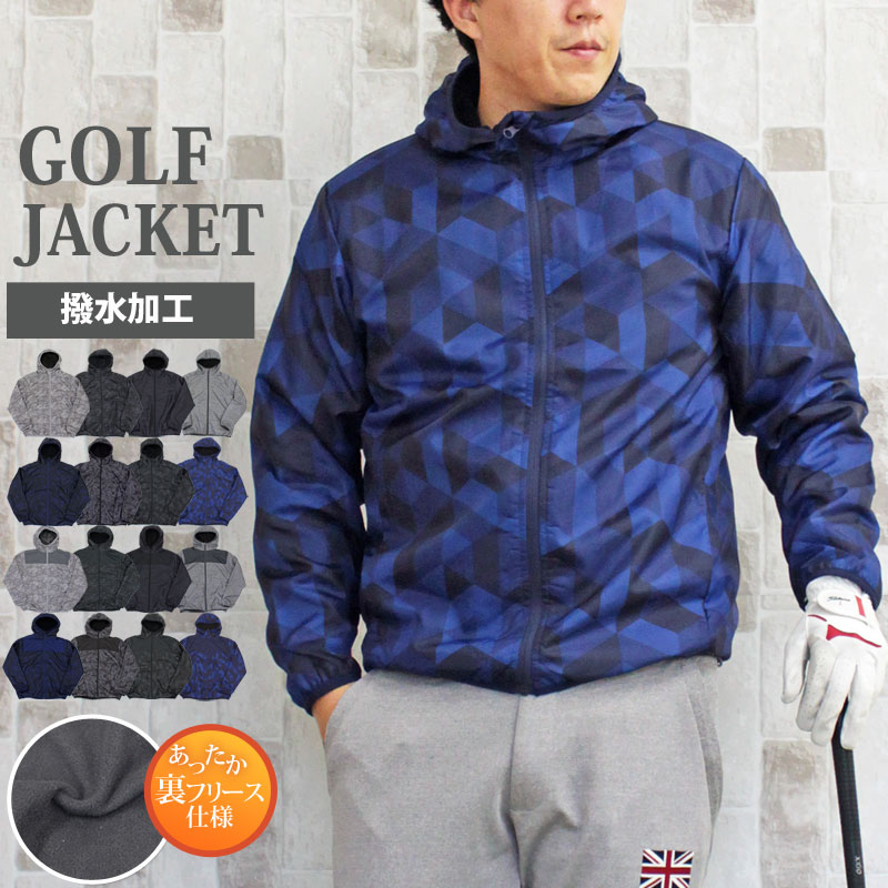 ゴルフジャケット メンズ ゴルフウェア 裏起毛フリース 撥水加工 アウター ブルゾン パーカー フード フルジップアップ スポーツウェア 暖かい 防寒 秋冬