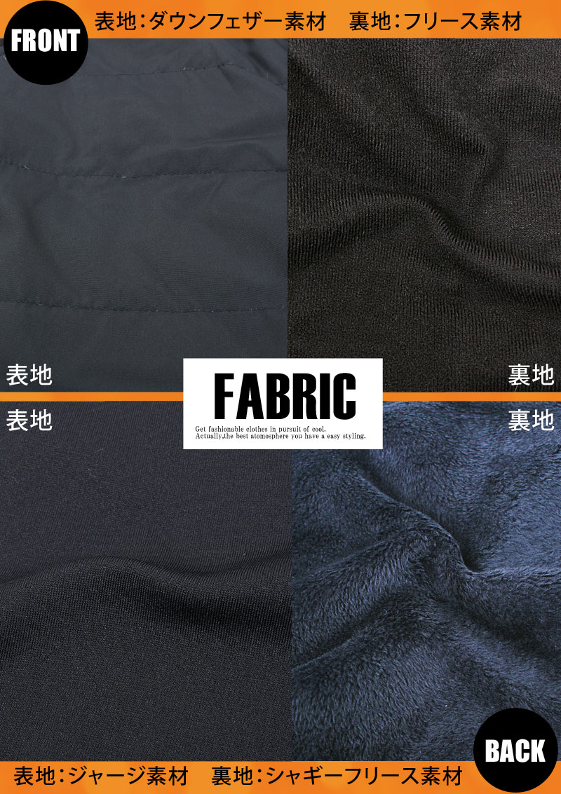 スタンドネックダウンジャケットの袖と襟、後身頃に