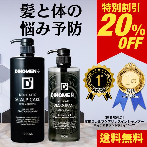 【サマーSALE】DiNOMEN 薬用 スカルプケア リンスイン シャンプー 1000ml & 薬用 デオケア ボディソープ 700ml 育毛 薄毛 抜毛 ふけ かゆみ 体臭 加齢臭
