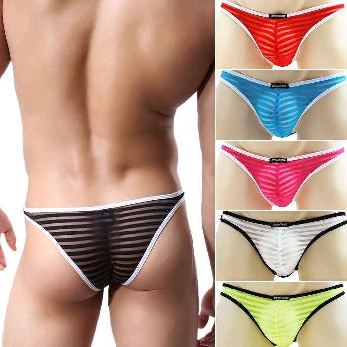 メンズビキニ 男性下着 メンズインナーWowhomme/JJSOX ボーダー柄メッシュ ビキニパンツ ハーフバックビキニ (wh28)