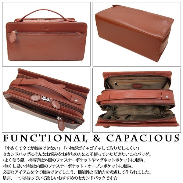 | 「小さくて全てが収納できない」「小物がゴチャゴチャして取りだしにくい」 セカンドバッグにそんなお悩みをお持ちの方にこそ使っていただきたいこのバッグ。 セカンドバッグでありながら収納力を第一に考えられており、 ダブルファスナーでメイン収納を分ける事で仕分けを容易にし、使い易さ、収納力を実現しました。 ・よく使う鍵、携帯等は外側のファスナーポケットやマグネットポケットに収納。 ・無くし易い小物は内側のファスナーポケット・オープンポケットに収納。 必要なアイテムを全て収納できてしまう、機能性と収納力を考慮して作られました。 『革の宝石』と呼ばれるコードバン(馬革)を贅沢に使ったエグゼクティブモデル。 是非、一つは持っていて欲しいおすすめのセカンドバックです☆ ■カラー:ブラック ■カラー:ブラック、ワイン、ブラウンよりお選び下さい ■素材:外側:コードバン(馬革)、PU・内側:ナイロン ■サイズ:(約)横26×縦14cm×マチ9.8cm ■仕 様:Wファスナー開閉 ・外側仕様:メインファスナー×2ファスナーポケット×1、マグネットポケット×1 ・内側仕様:ファスナーポケット×1、オープンポケット×1 ■新品・未使用 ※ご注意※革は自然が造り出した理想的な繊維です。 自然由来の素材のため革には動物が元々持っていたシワやたるみ、キズ、血管、毛穴などの痕跡が存在する場合があります。 これらは革本来の特長であり、魅力でもあります。 ※製造上の過程により商品によっては多少の細かな傷やへこみ、剥げ、縫製のゆがみ、ノリの付着がある場合が御座います。 ※ご覧のモニターやプラウザの設定、照明等により、画像と実物の色合いが、若干異なる場合が御座います。 ※商品の仕様・デザインは、製品向上の為に予告なしに変更になる場合がございます。 |