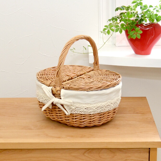 ピクニックバスケット フタ付き ウィッカー バスケット レース Mサイズ