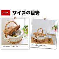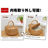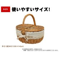 商品番号:qn68702c ころんとした丸みがかわいいフタ付きピクニックバスケットです。 キッチンでのちょっとしたお菓子入れや、編み物の毛糸入れ、ソーイングセットを入れたり、コスメをいれたり、どんな用途でもかわいく演出します♪ 内布はとりはずし可能なので洗濯可能で便利! 【外寸サイズ(約)】W22cm D28cm H14cm 【素材】 本体:ウイロー(煮柳) 内布:コットン 【備考】 ※サイズは全て外寸サイズです。 ※天然素材を使用した手編み製品のため、素材の色味の違いや、表記サイズとの誤差(2、3cm程度)が生じる場合がございます。 PayFesSale