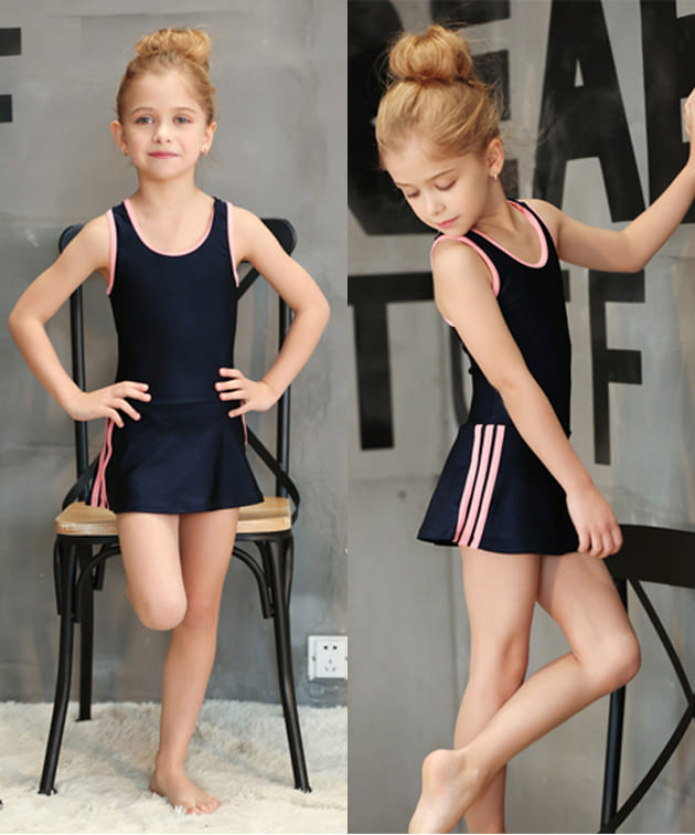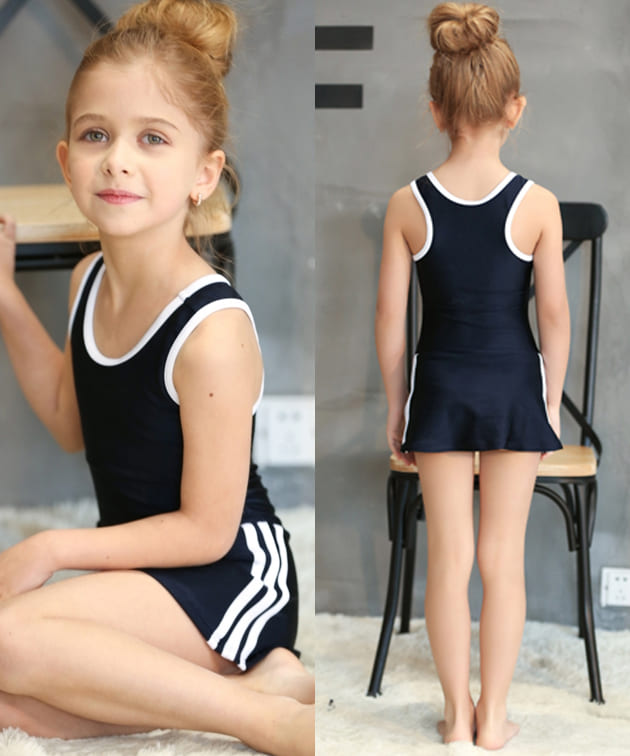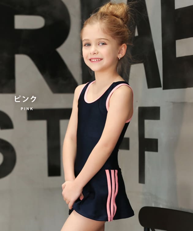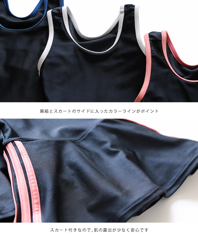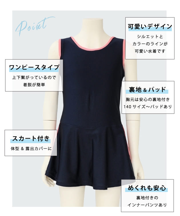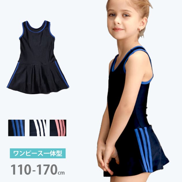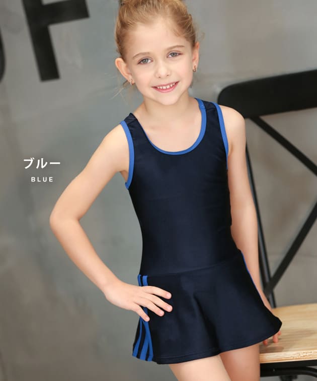 女児 サイドライン入り ワンピース スクール水着 ガールズ 女子 ワンピース水着 スカート Aライン 女の子 水着 ジュニア 110 120 130 140 150 160 170