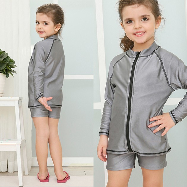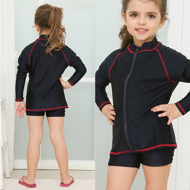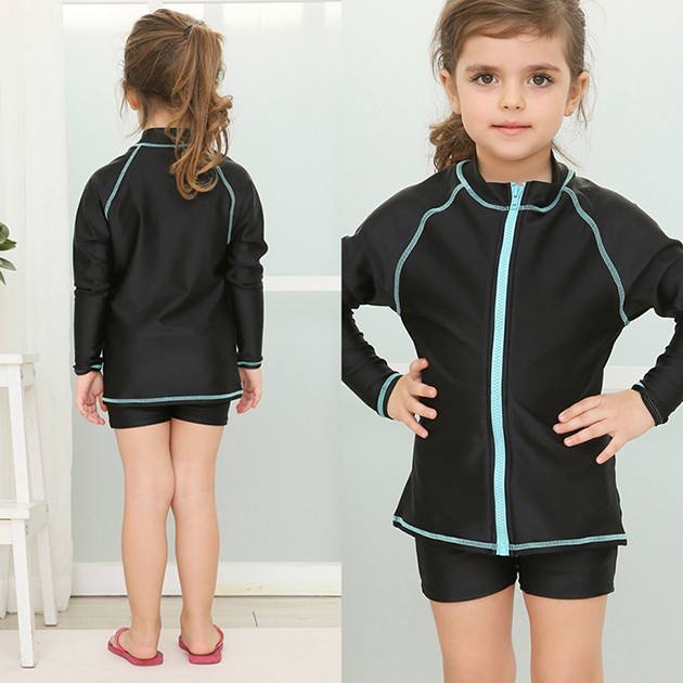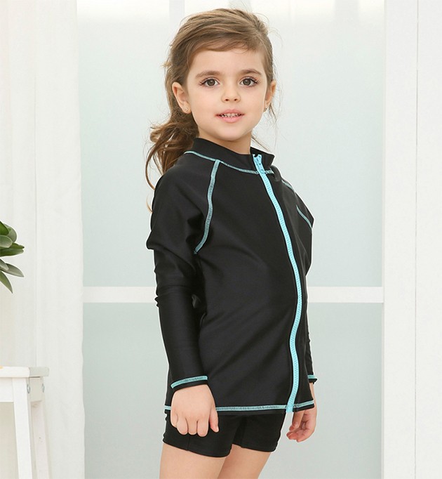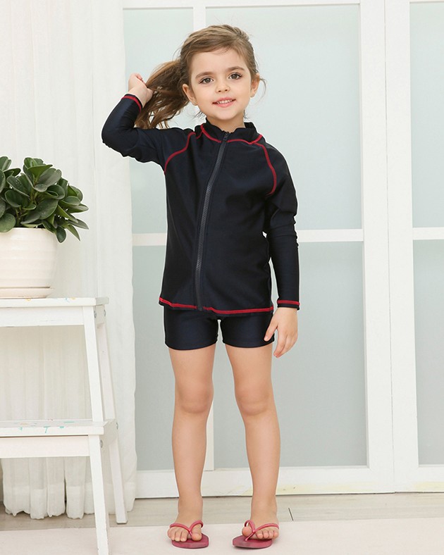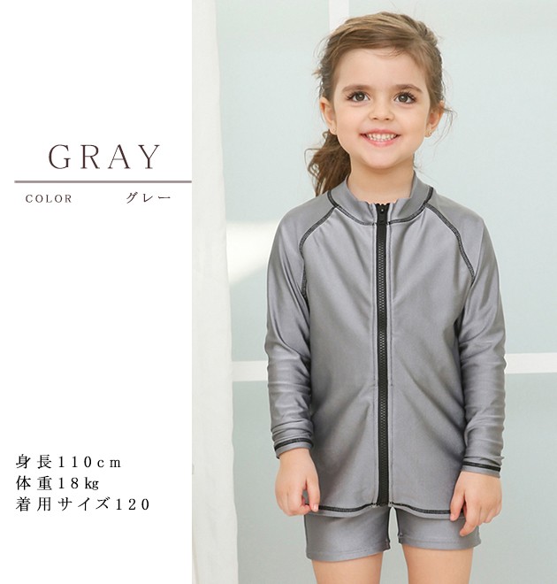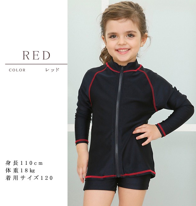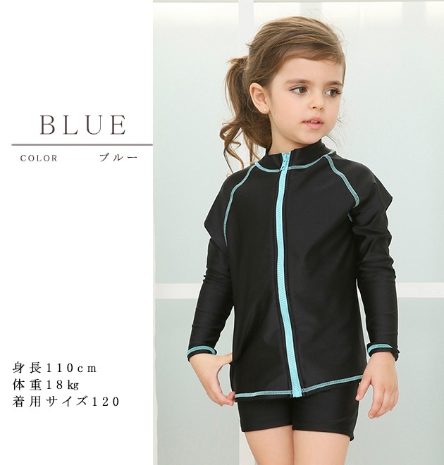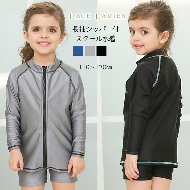 女児 長袖 前ジッパー セパレート スクール水着 ガールズ 女子ハーフパンツ ラッシュガード 女の子 水着 ジュニア 110 120 130 140 150 160 170