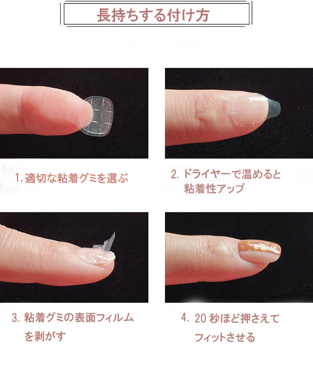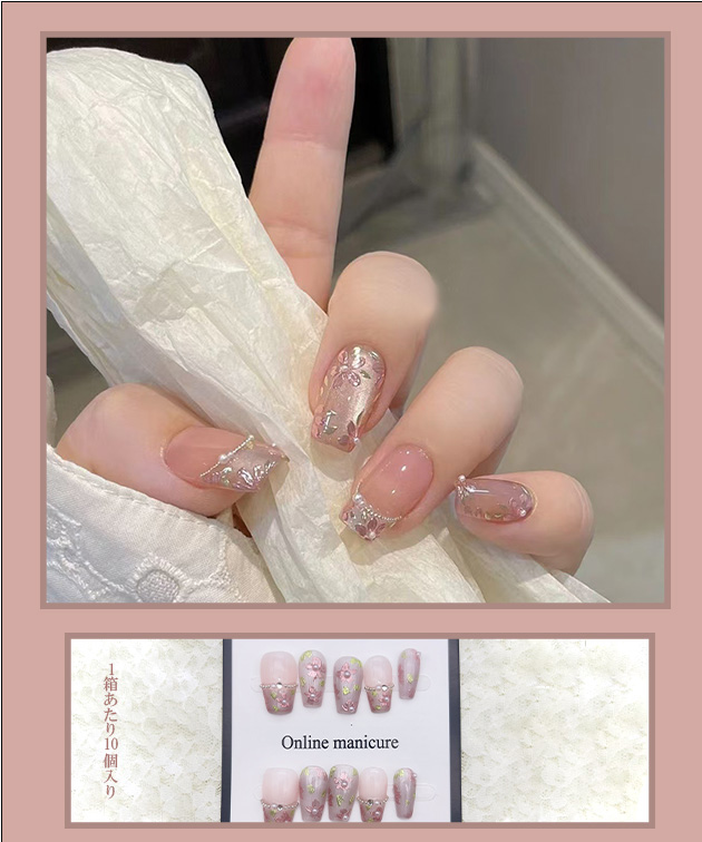 | ■商品説明 それぞれの指で異なる表情が可愛い、デザインネイルチップ。 女性らしいフラワー柄をメインモチーフに、フレンチや立体アートなど様々な表情にアレンジしました。 血色感のある指先に見せてくれるピンクベースに、ラメやビジューで華やぎをプラス。 派手すぎないデザインは、オフィスやセレモニーなどのオンコーデにもお使いいただけます。 シールタイプなので着脱がしやすく、ネイル初心者の方にもトライしやすいアイテムとなっています。 ■サイズ(cm) XS S M 【セット内容】 ・ネイルチップ 10枚 ・粘着シール 24枚 ・ネイルファイル 1個(色ランダム) ・ウッドスティック 1個(色ランダム) ■素材 ウレタン樹脂 ■使用方法 (1)消毒用エタノール等で爪の油分や汚れをふき取る (2)粘着グミタイプ:適切なサイズの粘着グミを爪に貼り、表面フィルムを剥がす グルータイプ:ネイルチップの裏側に適量にグルーを塗る (3)爪の根元からネイルチップを付ける (4)20秒ほど押さえてフィットさせる ■長持ちの秘訣 ・ネイルチップを貼る前に、反射点やグリースがなくなるまでネイルファイルで爪を磨きます。 ・爪よりも少し小さめのネイルチップをお選びください。 ・粘着グミが温かいと粘着性が高くなります。寒い時期はドライヤーなどで温めてからご使用いただくとより効果的です。 ・ネイルチップと爪の間の空気を抜くように指でギュッと押さえると、さらにしっかりと密着します。 ・効果を長持ちさせるため、粘着後2時間は水に触れないようにしてください。 ■外し方 ウッドスティックを自爪とチップの間に少しずつ差し込み、ゆっくりと剥がしてください。無理やり剥がすと爪が痛む原因となります。 ※剥がしにくい場合は、外す前に指をぬるま湯に5〜10分程浸すか、ウッドスティックにオイルなどを含ませてから行うと効果的です。 ■原産国 MADE IN CHINA ■注意事項 ・撮影画像と実物の色合いが多少異なって見える場合がございます。 ・サイズは平置きでの採寸となりますので、測定方法によって多少の誤差が生じる場合がございます。 ・入荷・生産時期により、色味、サイズ、素材などが多少異なる場合がございます。 ・本製品は生産過程におきまして、生地を織る際の糸の継ぎ目や多少のほつれが生じることがあります。 ・お手頃な価格でご提供しているため、簡易包装となっており、保管・梱包時にシワが生じる場合がございます。 ・靴商品については、商品箱が破損している場合がございます。 上記内容について、あらかじめご了承くださいますようお願い申し上げます。 |