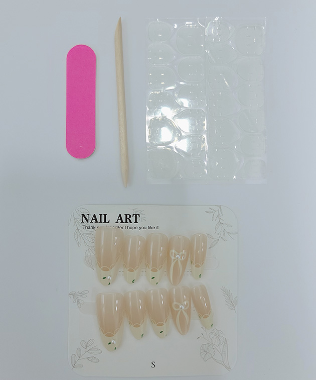 | ■商品説明 定番フレンチデザインのネイルチップ。 ナチュラルなクリアカラーをベースにホワイトカラーを乗せることで、清楚×上品な印象に仕上げました。 境目にはスカラップ模様をあしらい、可愛らしい印象に。 大きなリボンのアートが、派手すぎないアクセントになっているのもポイントです。 存在感控えめのデザインが使いやすく、普段使いにはもちろん、オフィスやセレモニコーデとも相性ぴったり。 着用シーンを問わず、幅広く活躍してくれます。 ■セット内容 ・ネイルチップ 10枚 ・粘着シール 24枚 ・ネイルファイル 1個(色ランダム) ・ウッドスティック 1個(色ランダム) 1個 ■素材 ウレタン樹脂 ■使用方法 (1)消毒用エタノール等で爪の油分や汚れをふき取る (2)粘着グミタイプ:適切なサイズの粘着グミを爪に貼り、表面フィルムを剥がす グルータイプ:ネイルチップの裏側に適量にグルーを塗る (3)爪の根元からネイルチップを付ける (4)20秒ほど押さえてフィットさせる ■長持ちの秘訣 ・ネイルチップを貼る前に、反射点やグリースがなくなるまでネイルファイルで爪を磨きます。 ・爪よりも少し小さめのネイルチップをお選びください。 ・粘着グミが温かいと粘着性が高くなります。寒い時期はドライヤーなどで温めてからご使用いただくとより効果的です。 ・ネイルチップと爪の間の空気を抜くように指でギュッと押さえると、さらにしっかりと密着します。 ・効果を長持ちさせるため、粘着後2時間は水に触れないようにしてください。 ■外し方 ウッドスティックを自爪とチップの間に少しずつ差し込み、ゆっくりと剥がしてください。無理やり剥がすと爪が痛む原因となります。 ※剥がしにくい場合は、外す前に指をぬるま湯に5?10分程浸すか、ウッドスティックにオイルなどを含ませてから行うと効果的です。 ■原産国 MADE IN CHINA ■注意事項 ・撮影画像と実物の色合いが多少異なって見える場合がございます。 ・サイズは平置きでの採寸となりますので、測定方法によって多少の誤差が生じる場合がございます。 ・入荷・生産時期により、色味、サイズ、素材などが多少異なる場合がございます。 ・本製品は生産過程におきまして、生地を織る際の糸の継ぎ目や多少のほつれが生じることがあります。 ・お手頃な価格でご提供しているため、簡易包装となっており、保管・梱包時にシワが生じる場合がございます。 ・靴商品については、商品箱が破損している場合がございます。 上記内容について、あらかじめご了承くださいますようお願い申し上げます。 |