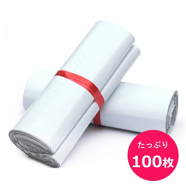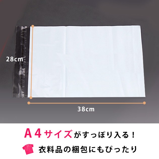 【100枚】宅配ビニール袋 W28×H38+フタ4 梱包 透けない 白 A4サイズ ワンタッチテープ 強力テープ付き 薄手 軽量 防水 フリマ 通販