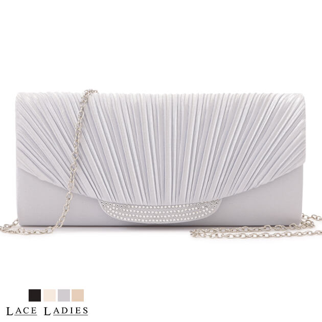 | 商品説明 | シンプルながらも大人な雰囲気漂う綺麗めパーティーバッグ。 光沢感のあるプリーツが上品で華やかなデザインです。 取り外し可能なチェーンストラップ付きで、クラッチバッグ、ショルダーバッグとして、シーンに合わせてお持ちいただけます。 マグネット式のボタンでがばっと大きく開き、荷物の出し入れがしやすく、ポケットが付いているのも嬉しいポイント。 スマホやご祝儀袋などもしっかり収納できます。 パーティーシーンやフォーマルに大活躍のアイテムです。 |