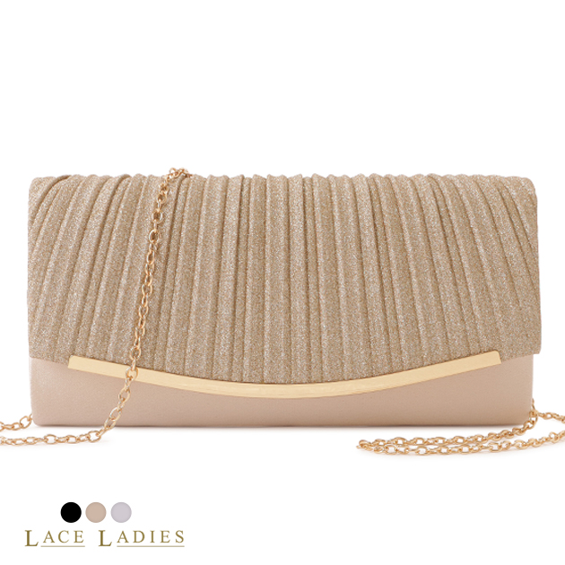 | 商品説明 | ラメ生地にプリーツを施した上品なパーティーバッグ。 細かなグリッターラメなので派手になりすぎず、大人の女性に似合うデザインに仕上げています。 ころんとしたまるみのあるフォルムは、手にした時にしっくり馴染んで持ちやすいです。 取り外し可能なチェーンストラップも付いているので、ショルダーバッグとしてもお使いいただけます。 コンパクトなサイズ感ながら、お呼ばれ時に必要なものはしっかり収納できます。 フェミニンなドレスにも、ハンサムなパンツスタイルにも合わせられる万能アイテムです◎ |