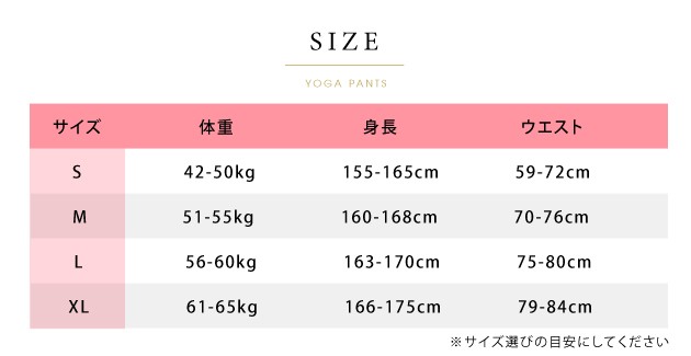 | サイズ | S:体重42〜50kg/身長155〜165cm/ウエスト59〜72cm M:体重51〜55kg/身長160〜168cm/ウエスト70〜76cm L:体重56〜60kg/身長163〜170cm/ウエスト75〜80cm XL:体重61〜65kg/身長166〜175cm/ウエスト79〜84cm ※体重は目安です。 |