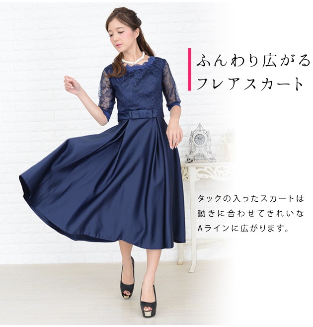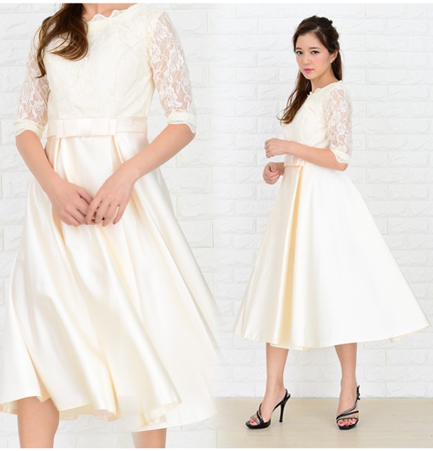 大人の魅力を引き立たせるミモレ丈のパーティードレス。