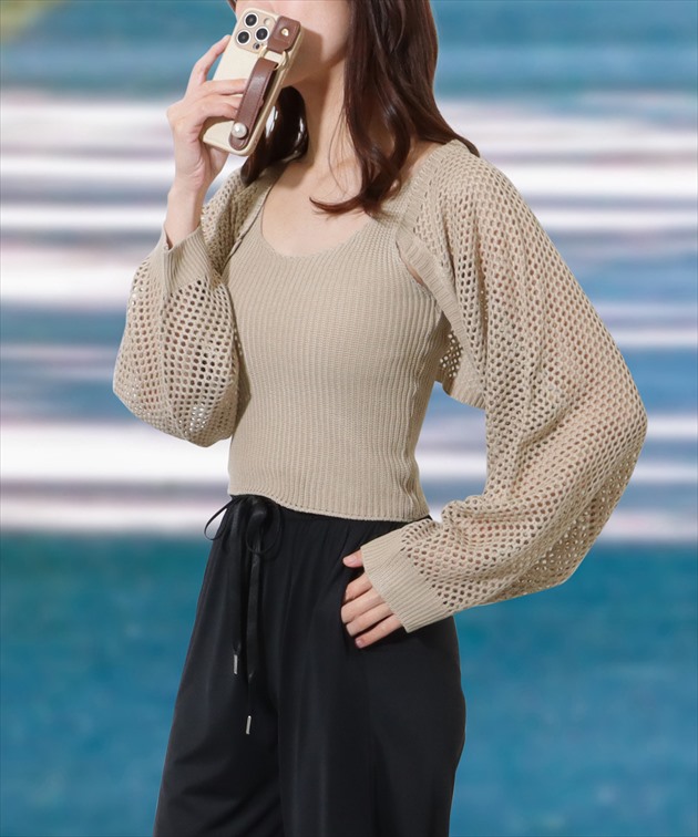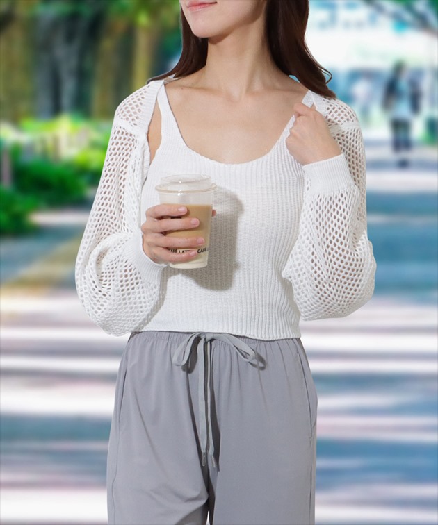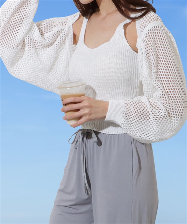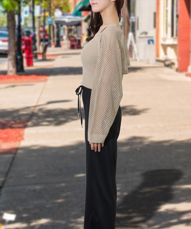 | ■商品説明 涼しげなメッシュボレロが目を引く、セットアップ。 抜群の通気性で、暑い季節にも重宝するアイテムです。 スタイルアップ効果の期待できるコンパクトな丈感と、ボリューミーなバルーン袖が今年らしく、トレンド感はたっぷり。 ボトムはウエストゴムのイージータイプで、リラクシーな穿き心地が魅力です。 デイリーコーデにはもちろん、水遊びやアクティブなレジャーシーンなど、幅広いシーンでお使いいただけます。 【セット内容】 3点セット ・ニットボレロ ・トップス ・イージーパンツ ■サイズの目安(cm) ※ヌードサイズ 【F(フリーサイズ)】バスト:79-88、ウエスト:58-78、ヒップ:82-100 ■素材 ポリエステル82%, ポリウレタン18% ■モデル情報 身長165cm / 体重48kg / バスト75 / ウエスト58 / ヒップ88 / 骨格ウェーブ ■原産国 MADE IN CHINA <ご注意事項> ・色合いはモニター環境により若干の誤差が出ます。 ・サイズは測り方により若干の誤差が出る場合がございます。2-3cmの誤差は予めご了承ください。 ・伸び縮みの有る伸縮素材の製品の為、着用可能な適合許容範囲が比較的広い特徴があります。 ・本製品は生産過程におきまして、生地を織る際の糸の継ぎ目や多少のほつれが生じることがあります。 ・柄生地は総柄の為、1点1点異なります。予めご了承下さい。 ・プールのスベリ台での摩擦は、生地を傷めます。 <お取扱方法> ・乾燥機、洗濯機、ドライヤーのご使用はお避け下さい。 ・ご使用後、海水やプールの塩素を落とす為、早めの水洗いをおすすめします。 ・ご使用後、ビニール袋に密閉し長時間放置しますと塩素等の影響で変色する可能性がございます。 ・手洗い後はバスタオルなどで押して水分を取り、直射日光は避け、陰干しをお願い致します。 |