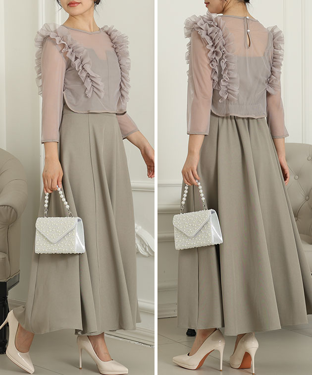 | ■商品説明 アシンメトリーなボリュームフリルが華やぐロングドレス。 オーガンジー素材のトップスとキャミソールワンピースをセットにしました。 肌が透ける素材を用いて抜け感を出しつつも、詰まったネックラインできちんと感はキープ。 着丈は自然と重心が上がるショート丈に設定しました。 ワンピースはダブルストラップ&フロントデザインでシンプル以上に。 バックウエストにはゴムを採用して着心地の良さにもこだわりました。 動きに合わせて揺らめくシルエットが女性らしさを底上げする、フォーマルなシーンにピッタリのドレスです。 ■サイズ(cm) 【S】身幅:アウター:43.5,ワンピース:41.0cm / 肩幅:アウター:37.0cm / 総丈:アウター:42.0,ワンピース:〜128.5cm / そで丈:アウター:41.5cm 【F フリーサイズ】身幅:アウター:47.5,ワンピース:45.5cm / 肩幅:アウター:43.0cm / 総丈:アウター:42.0,ワンピース:〜135.5cm / そで丈:アウター:43.0cm ■素材 【ワンピース】表地:ポリエステル100% / 裏地:ポリエステル100% 【トップス】表地:ポリエステル100% / 裏地:なし ■モデル情報 164cm 45kg B80 W60 H90 骨格ウェーブ ブラック着用サイズ:S ■原産国 MADE IN CHINA ■注意事項 ・撮影画像と実物の色合いが多少異なって見える場合がございます。 ・サイズは平置きでの採寸となりますので、測定方法によって多少の誤差が生じる場合がございます。 ・入荷・生産時期により、色味、サイズ、素材などが多少異なる場合がございます。 ・本製品は生産過程におきまして、生地を織る際の糸の継ぎ目や多少のほつれが生じることがあります。 ・お手頃な価格でご提供しているため、簡易包装となっており、保管・梱包時にシワが生じる場合がございます。 ・靴商品については、商品箱が破損している場合がございます。 上記内容について、あらかじめご了承くださいますようお願い申し上げます。 |
