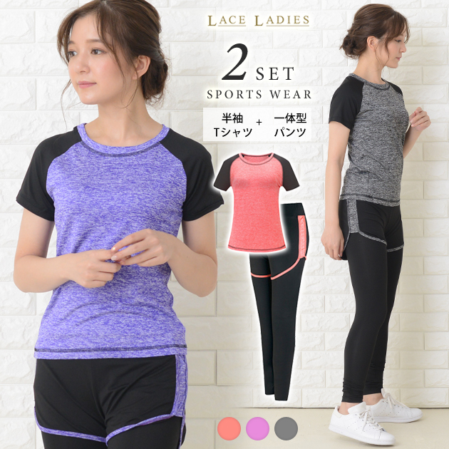 | 商品詳細 | ◆伸縮性:あり ◆上下セット(半袖Tシャツ+一体型スポーツレギンス・ズボン) |