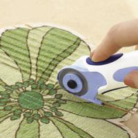 ■刃を確実に固定するラチェット機構。押すときには刃が回転しないラチェット機構。刃が回転しないので布がガイドと刃の間にくいこまずに重ねた布がきれいに切れます。