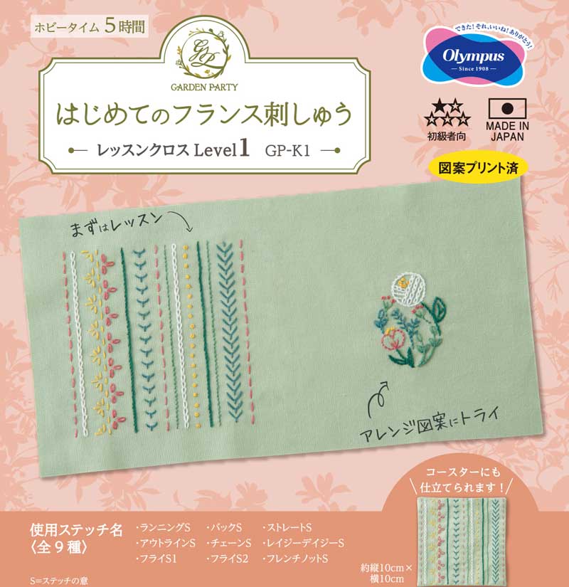 はじめてのフランス刺しゅう GARDEN PARTY(ガーデンパーティー)レッスンクロスLevel1 オリムパス GP-K1