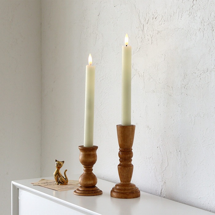 | アンティークのような雰囲気のある木製のスタンドとLEDキャンドルライトのセットのご紹介です。 ■こちらはSサイズ。 ■素材には軽いパイン材を使用しており、アンティークのような重厚感を出すために一つ一つ手作業で塗装を行っています。※天然木を使用しているため、木目や節の出方、色合いに個体差があります。予めご了承ください。 ■パイン材の自然な風合いがどんなインテリアにも自然に溶け込んでくれます。 ■LEDキャンドルライトは 本物の炎のように心地よく揺らめき、リラックスした空間を演出してくれます。 ■本体の表面は蝋でコーディングされており、表面の凹凸や上面の自然に溶けたようなフォルムがまるで本物のキャンドルのような仕上がりです。 ■単4電池2本で、約100時間の連続点灯が可能で、ON・OFFの切り替えは底面のスイッチを手動で押すだけの簡単な仕様。 ■火を使わないLEDライトなので、小さなお子様やペットのいる空間でも安心してお使いいただけます。 ■クリスマスシーズンの雰囲気作りや、夜のリラックスタイムなど様々なシーンでお楽しみください。 |