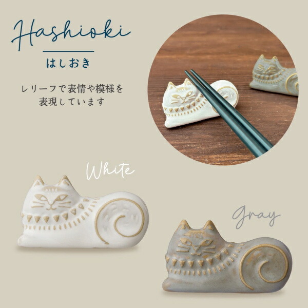 | DECOLE デコレより、レリーフの模様と窯変釉で個性豊かな猫のテーブルウェアシリーズのご紹介です。 ■FIKAネコレリーフ箸置き ■レリーフで表情や模様を表現しています |
