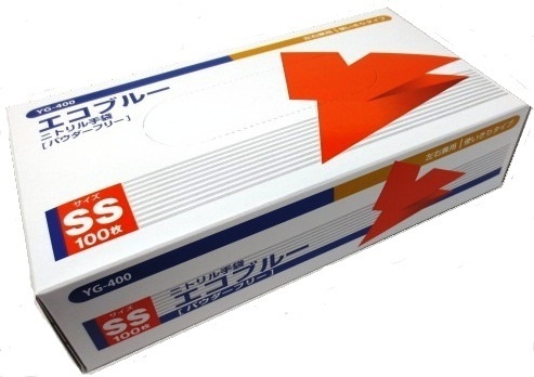 【食品衛生法適合】ニトリル手袋 エコブルー パウダーフリー (粉なし) YG-400-0 SSサイズ 100枚/箱 ニトリルグローブ【返品不可】