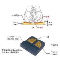 身体が前に動いた時に圧迫される尾骨部をクッション中央部に設けた溝で逃がし、圧迫力を取り除くと同時にずれ力の発生を防止します。また、ゲルとウレタンフォームの2層構造により坐骨部周辺にかかる圧迫力を低減します。
