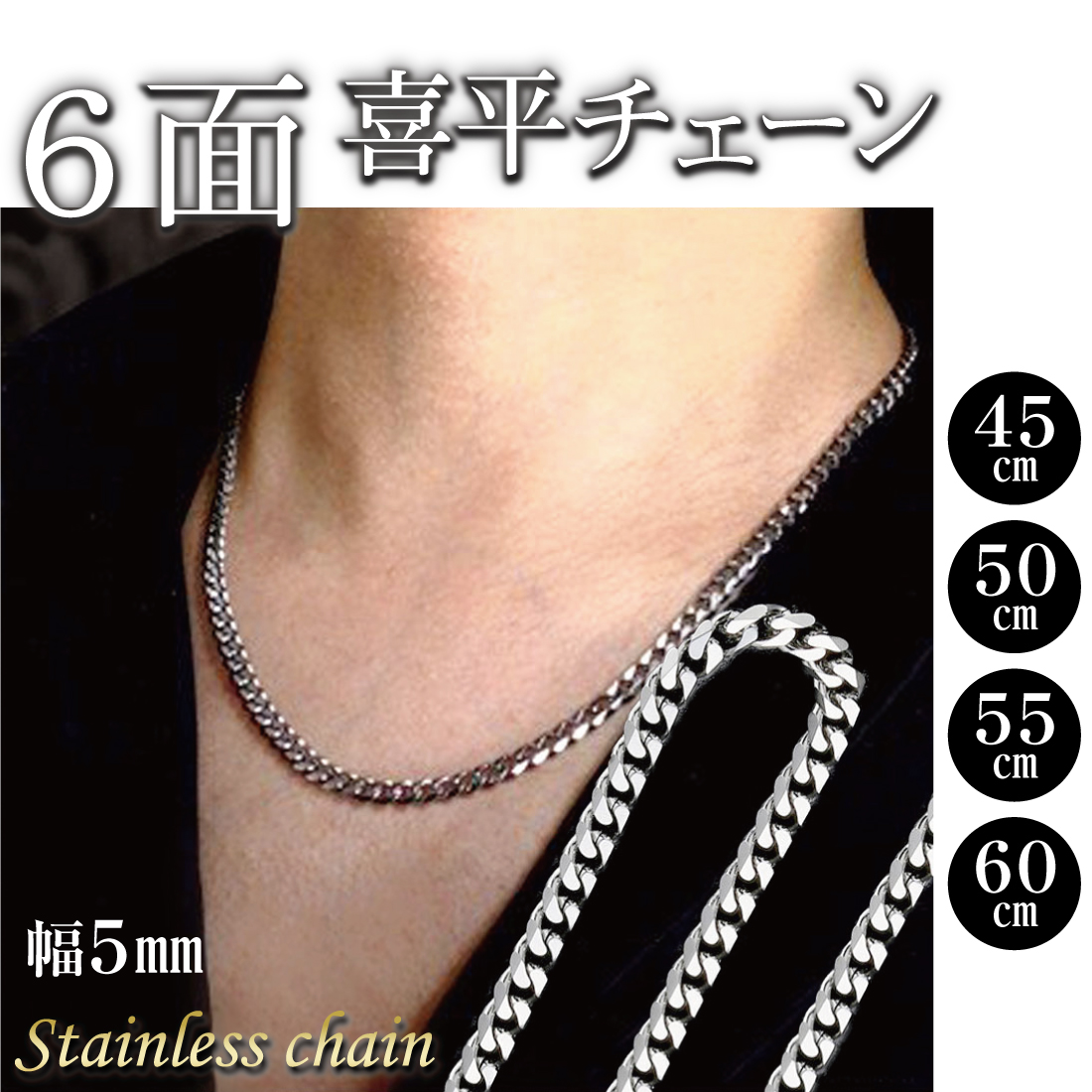 喜平 ネックレス チェーン メンズ 金属アレルギー対応 シルバー 6面カット 幅 5mm おしゃれ