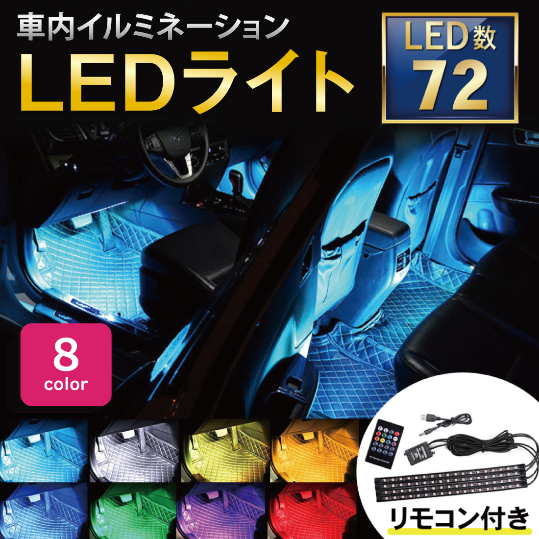 車内 イルミネーション リモコン付き カラフル発色 明るさ調節可能 音に反応 車用