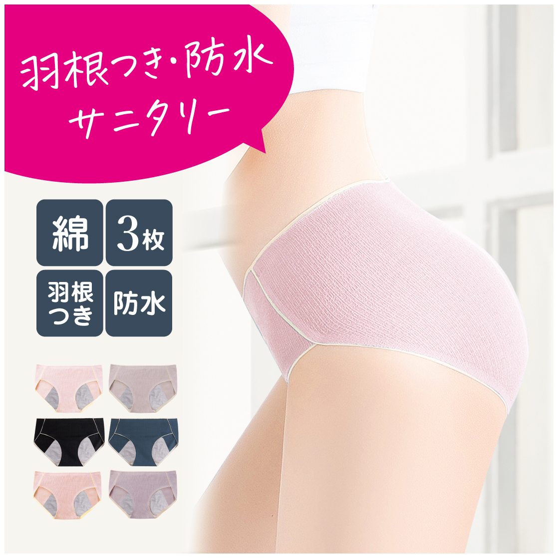 [3枚セット]サニタリーショーツ シームレス 羽根つき対応 下着 パンツ レディース