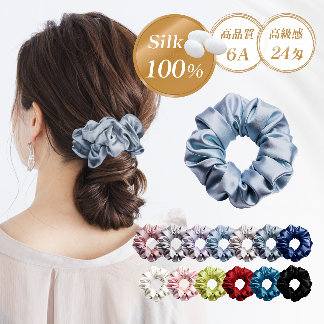 ヘアシュシュ シルク100% ヘアアクセサリー 髪留め シュシュ 大人 かわいい まとめ髪
