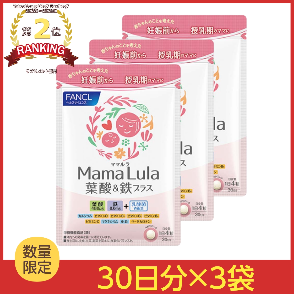 ファンケル ママルラ 葉酸&鉄プラス 90日分 [30日分×3袋] FANCL Mama Lula 1日4粒