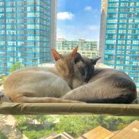 猫は高いところが大好き。窓際にハンモックがあれば、いつでも高い目線から外の景色を見ながら日光浴をしたり、ゆったりくつろぐことができます。