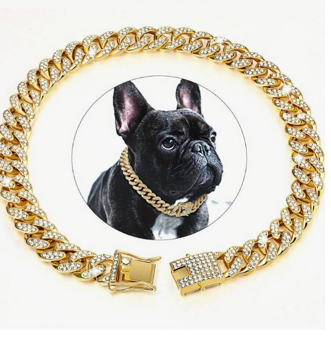 華やかな輝きが犬の首元を彩る、ゴージャスなゴールドの犬用ネックレスをご紹介します。このネックレスは、愛犬の首に装着することで、一層のエレガントさと魅力を演出します。