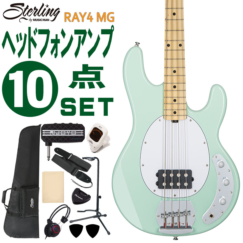 | Sterling by MUSIC MAN エレキベース 初心者10点セット Ray4 Mint Green 初心者向け 入門用 スティングレイ スターリン ヘッドホンアンプ付入門セット | ||||||||||||||||||||||||||||