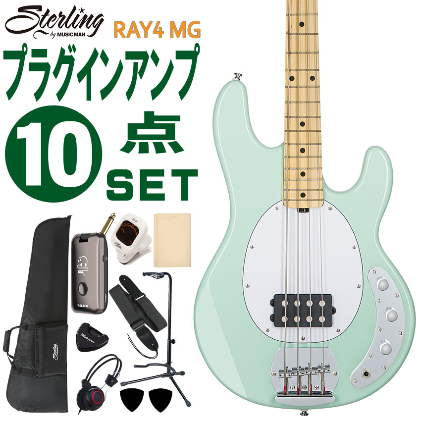 | Sterling by MUSIC MAN エレキベース 初心者10点セット Ray4 Mint Green 初心者向け 入門用 スティングレイ スターリン モデリングヘッドフォンアンプ付入門セット | ||||||||||||||||||||||||||||