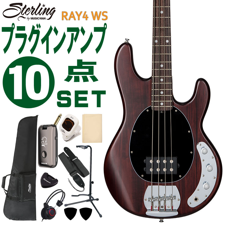 | Sterling by MUSIC MAN エレキベース 初心者10点セット Ray4 Walnut Satin 初心者向け 入門用 スティングレイ スターリン モデリングヘッドフォンアンプ付入門セット | ||||||||||||||||||||||||||||